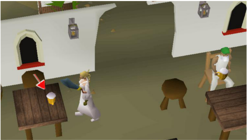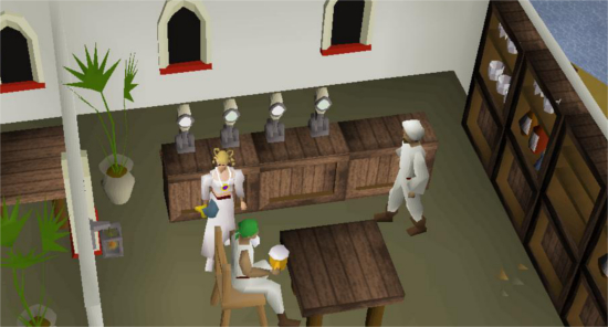 5. Once you're at Pollnivneach, enter the bar located in the southeast of the town. Talk to Ali the Barman and buy 3 mugs of beer.