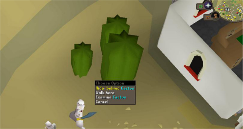 17. Go to the mayor's villa, located on the east side of town. You'll see a fountain in front. Locate a huge, odd cactus and hide inside. Once the coast is clear, use your key on the front door and gain access to the villa.