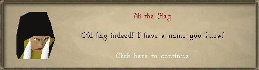 2. Ali Morrisane runs a small stall and is looking for extra help with his business. He asks you for a favor, requesting you go to a small town called Pollnivneach to find his nephew named Ali. Agree to help him and then look at his wares for sale. Buy the Karidian Headpiece and the fake beard, which will be used later on.