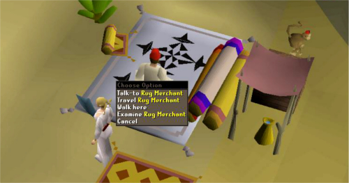 (a) On the east, you should see a rug merchant. You can pay him 200 coins to have him take you on his magic carpet ride, where he'll deposit you at your destination,